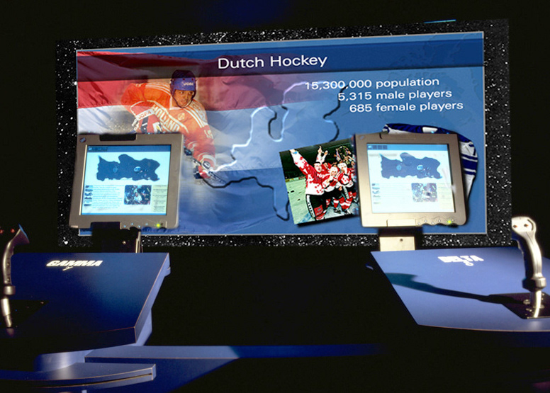 Key design contributor to the development of the “Global Game Encounter” for the Hockey Hall of Fame. This Included creative design for the HHOF kiosks, viewing screens, and websites for the HHOF and the IIHF. Also designed event installations for the “World Exhibits” and the IOC