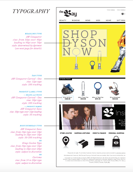 As the HBC Corporation transitioned with new acquisitions and restructuring a new online experience evolved. Working with the Corporation, Marketing and Branding teams for each retail store developed the IA structure, labelling and overall online experience that would give the user a complete experience, but still provide uniqueness to each store brand.